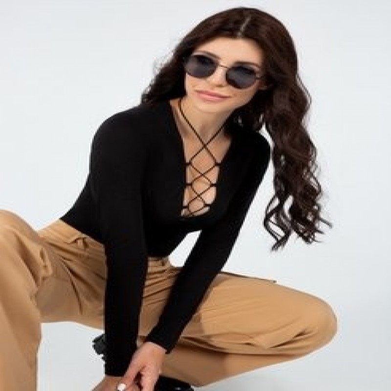 maglietta con lacci sul petto