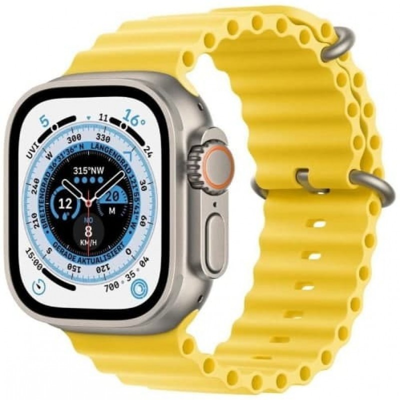 Orologi che espandono i confini Incontra gli Apple Watch più resistenti e funzionali. Un robusto case in titanio, GPS dual-band preciso, fino a 36 ore di autonomia, libertà di connessione cellulare e tre cinturini specializzati sono stati creati appositamente per atleti e avventurieri. Gli Apple Watch Ultra, progettati per lavorare in condizioni estreme, in alta quota e a temperature elevate, sono uno strumento indispensabile per l'esplorazione, con cui puoi andare ovunque. E tornare a casa. Quadrante Wayfinder con modalità notturna Il quadrante Wayfinder può essere facilmente commutato su una bussola attiva. In condizioni di scarsa illuminazione, puoi ruotare la Digital Crown per attivare la modalità notturna e vedere il quadrante diventare di un rosso brillante. Il display più grande e luminoso di Apple Watch I raggi diretti del sole non sono un problema per il display Retina con un'incredibile luminosità di 2000 nit al picco, ed è due volte più luminoso rispetto a qualsiasi altro Apple Watch. Il grande display può facilmente contenere tutte le metriche di allenamento necessarie e quadranti dettagliati. Pronti per le conquiste Il nuovo pulsante "Azione" offre un controllo fisico rapido su varie funzioni. È personalizzabile e può eseguire azioni come gestire un allenamento, contrassegnare un punto sulla bussola o iniziare un'immersione. Come te, i tuoi nuovi Apple Watch sono pieni di potenziale. Antenna GPS Il GPS dual-band preciso fornisce dati di posizione accurati per calcolare distanza, ritmo e mappe dei percorsi. Le prestazioni del GPS sono fondamentali per gli atleti che necessitano delle metriche più precise, sia che si allenino per le strade della città o nella natura selvaggia. Gli Apple Watch Ultra sono dotati di un nuovo sistema GPS dual-band ad alta precisione, che garantisce un'incredibile accuratezza nei luoghi più difficili da raggiungere. Durata della batteria di diversi giorni Quando sei al secondo giorno di un'escursione, nell'ultima fase di un triathlon o stai nuotando lungo una barriera corallina, l'ultima cosa a cui vuoi pensare è la scarica della batteria. Con un tempo di funzionamento della batteria più lungo che mai, puoi affrontare qualsiasi cosa e avere una riserva di energia inesauribile. Camminare, correre, immergersi Creare l'orologio sportivo perfetto per gli atleti richiedeva un approccio unico. Ecco perché i cinturini speciali per avventure all'aperto, allenamenti di resistenza e sport acquatici sono realizzati con la stessa cura degli orologi stessi. Sirena a 86 decibel Se ti perdi o ti fai male e hai bisogno di attirare l'attenzione, tieni premuto il pulsante "Azione" per attivare la sirena, udibile fino a 180 metri di distanza. Nuovo misuratore di profondità Gli Apple Watch Ultra presentano un nuovo misuratore di profondità. Fornisce dati e funzionalità necessarie per subacquei e freediver durante immersioni fino a 40 metri di profondità. Funzioni per la tua salute: — Monitoraggio del ciclo per donne — Monitoraggio del sonno — ECG — Notifiche sulla frequenza cardiaca — Misurazione del livello di ossigeno nel sangue
