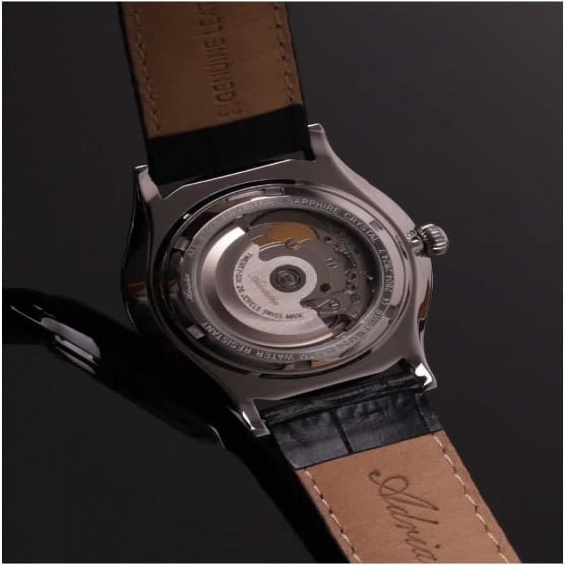 Adriatica è un marchio svizzero di orologi con quasi novant'anni di storia. I primi orologi a marchio Adriatica furono prodotti in Svizzera nel lontano 1931. Tra l'assortimento in continua evoluzione di Adriatica, ognuno può trovare orologi sia per l'uso quotidiano adatti a qualsiasi stile di abbigliamento, sia modelli per un look serale. A completare la collezione personale ci sono orologi in stile sportivo o con un popolare design aeronautico. Tutti gli orologi Adriatica sono realizzati in acciaio inossidabile medico ipoallergenico 316L e pelle di vitello naturale nella città di Camorino, situata in Svizzera. Il marchio Adriatica fa parte della Federazione dell'industria orologiera svizzera (Federation of the Swiss Watch Industry FH). Lo status del marchio Adriatica è confermato dalla partecipazione costante alla principale fiera mondiale degli orologi BASELWORLD che si tiene in Svizzera, così come alle fiere regionali in oltre 90 paesi del mondo. Modello meccanico con carica automatica (meccanismo ETA 2824-2). Vetro zaffiro, cinturino in pelle naturale con chiusura a fibbia.