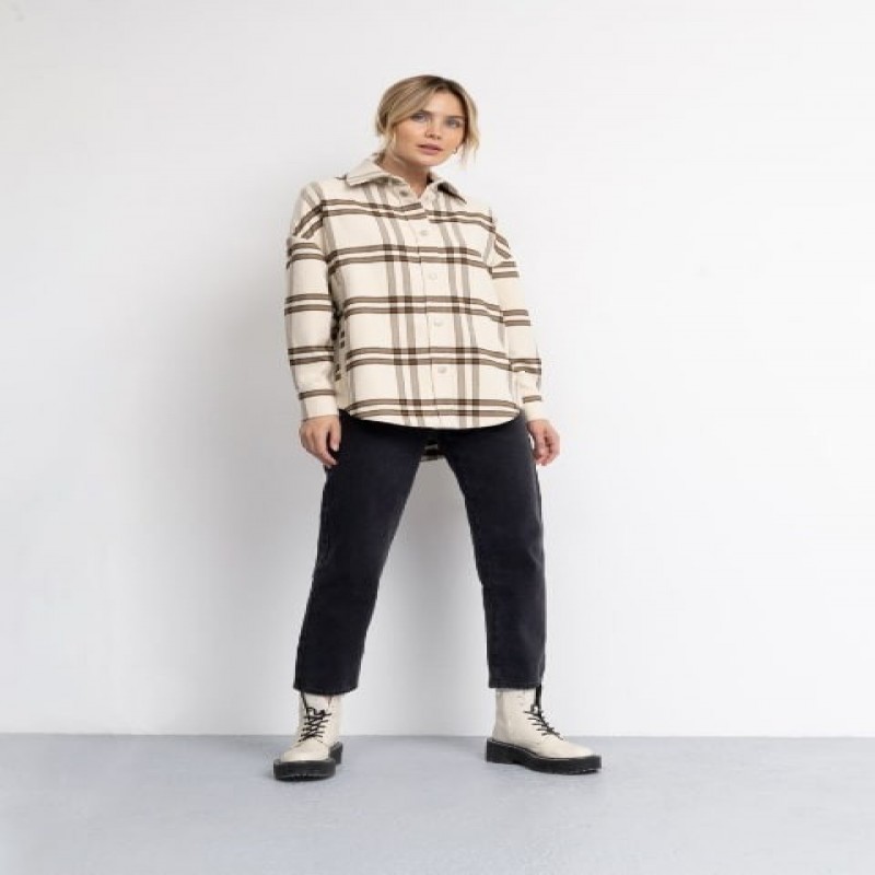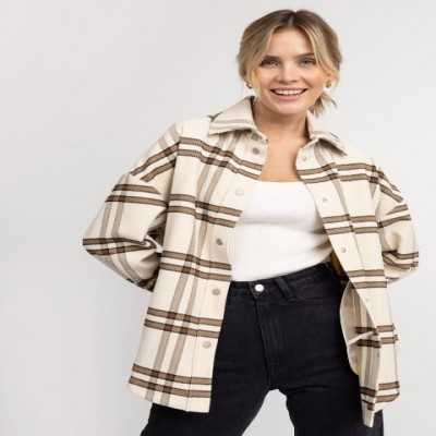 Una camicia beige essenziale a grande quadri marroni è allo stesso tempo un outfit elegante e casual di tendenza per questa stagione. La camicia da donna è realizzata in morbido tessuto di flanella con una leggera peluria, che offre incredibili sensazioni tattili, avvolgendo comodamente il corpo. Il modello giovanile quotidiano ha una silhouette dritta e comoda con una linea delle spalle abbassata, che consente una completa libertà di movimento. Sulla parte anteriore della camicia a quadri in stile inglese ci sono ampi taschini a taglio. La camicia calda si chiude con pratici bottoni metallici. Le maniche lunghe della camicia casual con pieghe e ampi polsini con bottoni si chiudono in modo sicuro. La camicia elegante in tessuto misto con colletto a revers è un capo versatile per passeggiate, gite fuori porta, viaggi, vacanze e come opzione di abbigliamento superiore per la mezza stagione. La camicia può essere indossata da sola, come giacca, o utilizzata per creare interessanti combinazioni a strati con t-shirt in maglia, top o dolcevita. Espandere la descrizione poliestere 37%, viscosa 60%, elastan 3%Descrizione